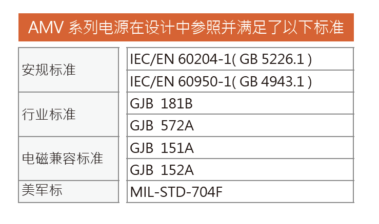 AMV 系列在設(shè)計上,皆符合MIL-STD-704F,確保電源特性能符合行業(yè)測試要求。